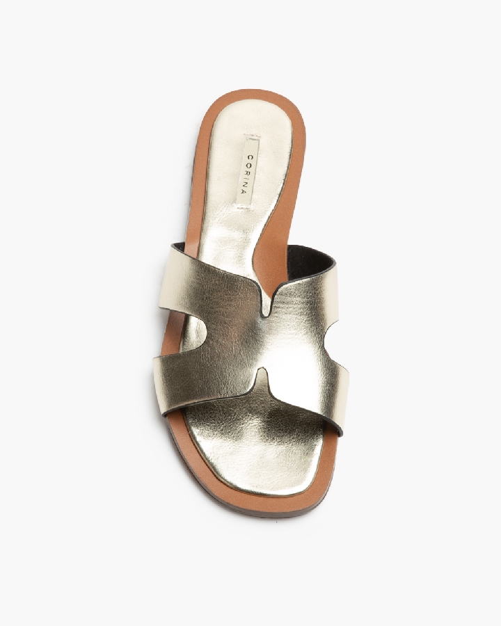 Φλατ σανδάλια από δερματίνη σε χρυσο χρώμα