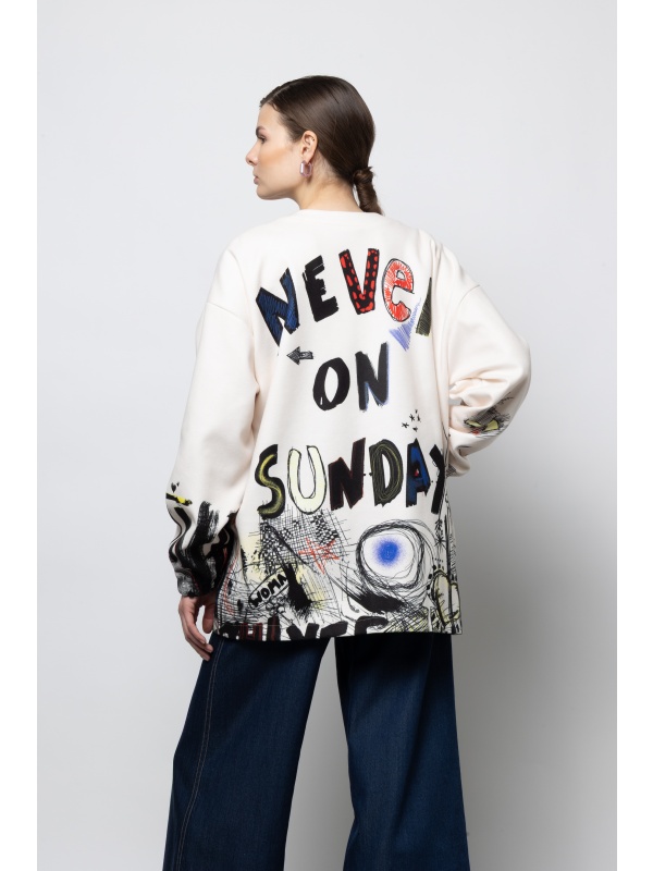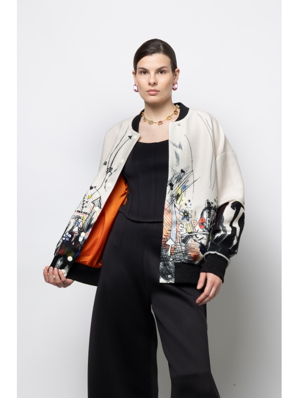 NEVER ON SUNDAY “Peace” Ecru Bomber Jacket
