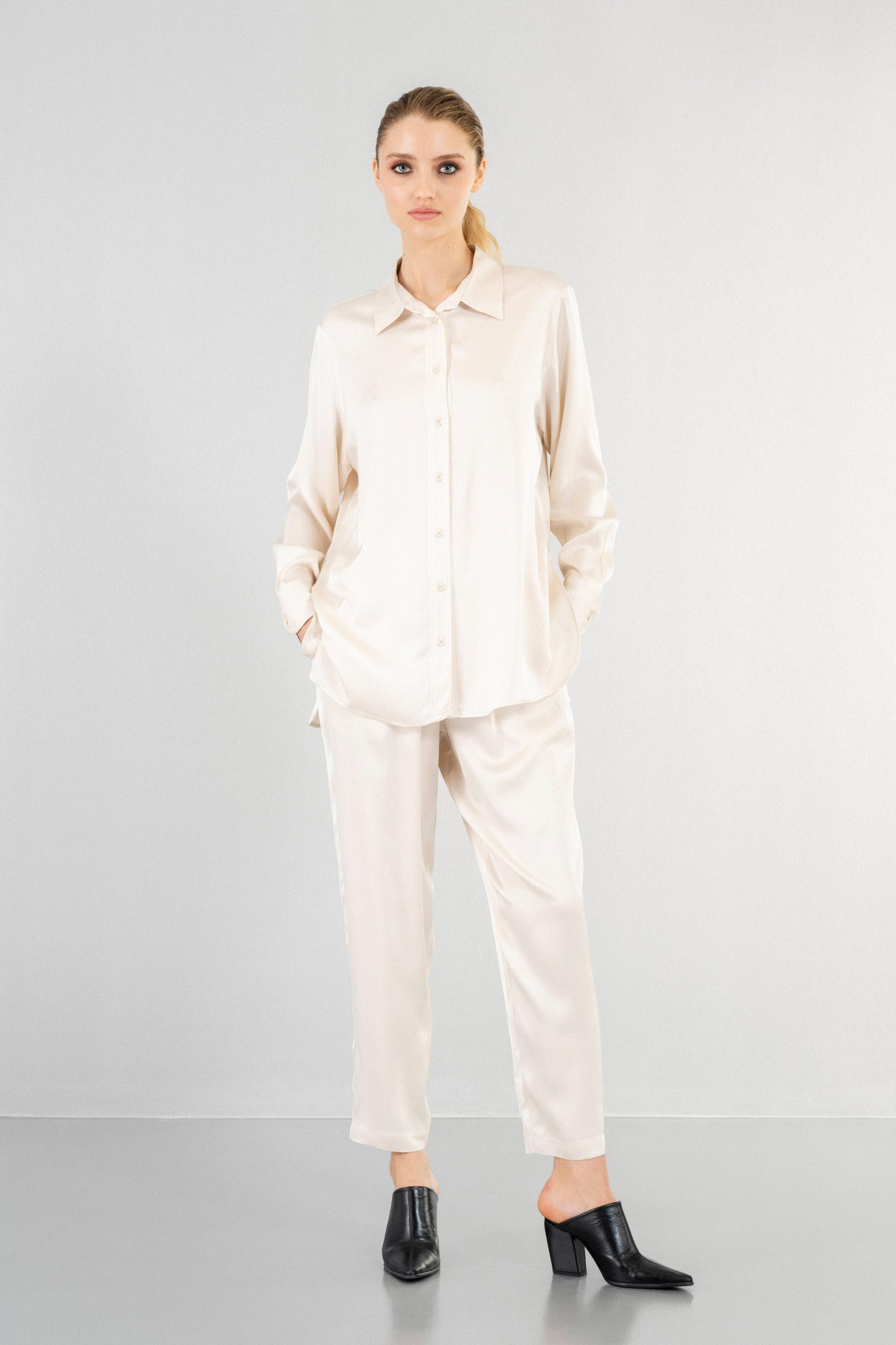 - Πουκάμισο satin, oversized, με μακρύ μανίκι