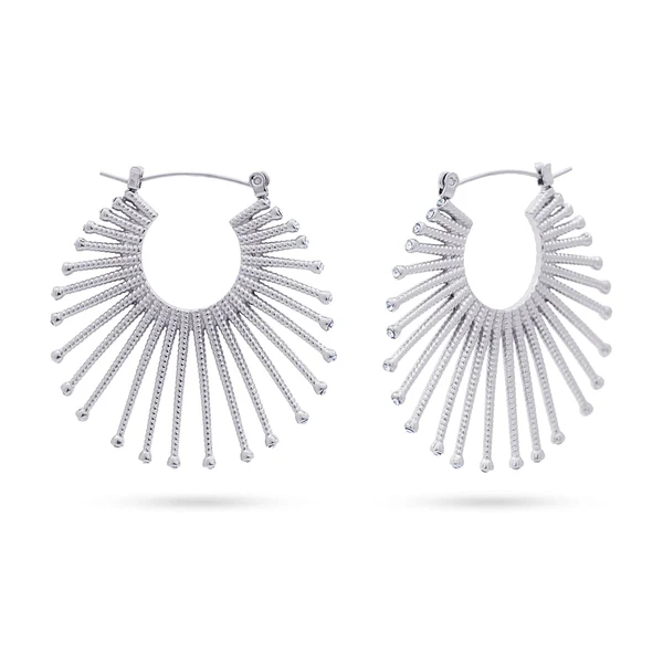 The Urchin Earrings are the perfect accessory to add a touch of light and originality to your outfit. Their fan-shaped shape, inspired by an explosion of light, is adorned with sparkling zircons and polished gold or silver-coloured steel. In addition, their Catalan-style clasp and hypoallergenic material make them comfortable and flattering for any occasion