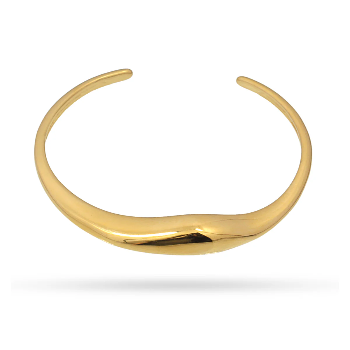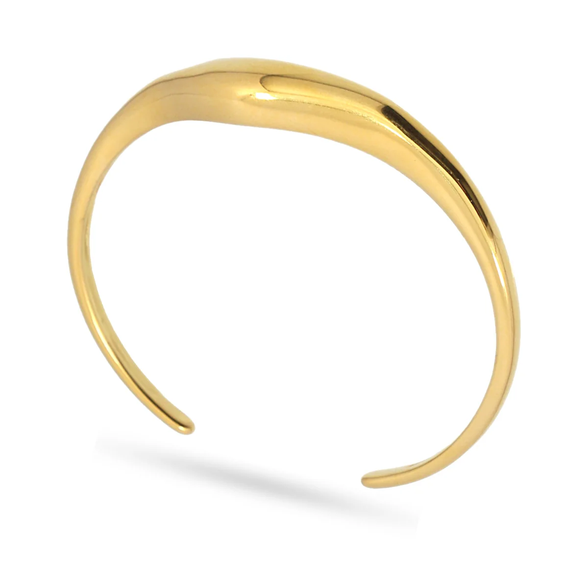 Made from surgical steel, its organic, rigid bracelet design is perfect for layering with other jewelry, such as pearls or colored stones.